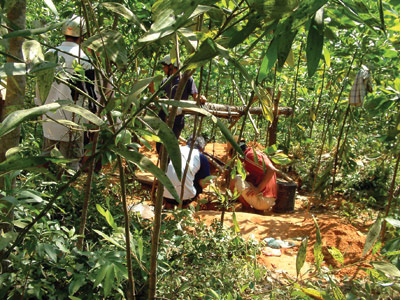 Hố đào vàng chi chít trong khu vực núi Thút Bút rộng mênh mông. Có hầm vừa mới khai ra, đất đỏ bật lên mới toanh, có hầm đã cũ được che lại. Những thân cây mới bị chặt phá còn ứa nhựa, xác xơ. Dưới chân núi, nhiều máy xay quặng vẫn còn để nguyên, có người trông coi nhưng cũng như tại bãi vàng, khi thấy người lạ là họ tìm cách tránh đi.