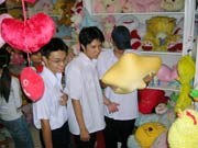 Từ sau Tết, các shop quà tặng tại TP.HCM trên đường Pasteur, Cao Thắng, Trần Hưng Đạo... đã nhộn nhịp nhập hàng quà tặng ngày Tình nhân. Chị Huỳnh Lê Hải Hà - chủ shop Hanah trên đường Pasteur nhận xét, thị trường quà tặng ngày Tình nhân năm nay sôi động hẳn so với mọi năm. Xu hướng các bạn trẻ bây giờ chọn những phần quà có giá trị cao hơn trước nhiều, trung bình từ 50.000đ - trên 100.000đ/phần. Đặc biệt, các bạn rất thích săn hàng độc đáo, nhiều bạn đã đến shop từ rất sớm để tìm kiếm". Nắm bắt được nhu cầu này, các shop quà lưu niệm nhập về khá nhiều quà tặng mới. Chẳng hạn hoa hồng đỏ thắm được làm bằng lông gà trông rất mượt mà, đẹp mắt, rồi những cành hồng có gắn bộ phận thu, phát. Bạn có thể ghi âm những lời tỏ tình dễ thương vào cành hồng rồi tặng cho người yêu. Anh Lưu Thanh Nam ngụ ở quận Bình Thạnh đang chọn quà cho người yêu tại shop Hanah nhận xét: "Tôi và các bạn tôi rất thích món quà này vì nó không chỉ gửi được thông điệp mà còn gửi cả giọng nói của người tặng, tôi nghĩ với món quà này tôi sẽ tạo được ấn tượng mạnh với bạn gái của mình...". Nhiều bạn trẻ khác lại thích tặng cho "một nửa" của mình quà gấu bông biết đi, cúi chào và hát "Love story", thú nhồi bông hình chú cọp vằn dữ dằn, hình chú khỉ quậy phá... Công ty PNJ cũng tung ra thị trường bộ sưu tập hơn 70 mẫu nữ trang thiết kế mới cho mùa Valentine năm nay với các nhãn hiệu CAO, PNJ Gold, PNJ Silver với hình ảnh trái tim làm chủ đạo. Trong ngày khai trương Trung tâm kim hoàn PNJ tại số 52 Nguyễn Văn Trỗi, cô Quỳnh Thư, đại diện PNJ, cho biết các mẫu nữ trang này được thiết kế với phong cách ấn tượng, gồm hình ảnh nhưng trái tim lồng vào nhau hoặc mề đay cặp, nhẫn cặp. Theo xu hướng, đá nhiều màu cũng được gắn vào các mẫu nữ trang này để tăng thêm sắc màu cho tình yêu muôn vẻ trong ngày Valentine.