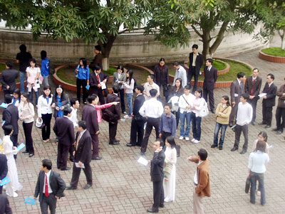 6h35, trước hội trường của ĐH Quốc gia Hà Nội, bạn trẻ là đại diện tiêu biểu của lực lượng sinh viên, bộ đội, trí thức... cả nước đã chờ sẵn để chuẩn bị vào bên trong hội trường tham gia buổi đối thoại trực tiếp với vị Chủ tịch nước.