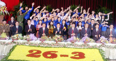 - Chủ tịch nước Nguyễn Minh Triết: Thưa các đồng chí và các bạn. Ngay những ngày đầu 1965, tôi đi học ở Sài Gòn trước đây, bây giờ là TP.HCM, tham gia phong trào đấu tranh HS-SV của Sài Gòn - Gia Định và từ đó xem như tôi mặc nhiên là cán bộ Đoàn.