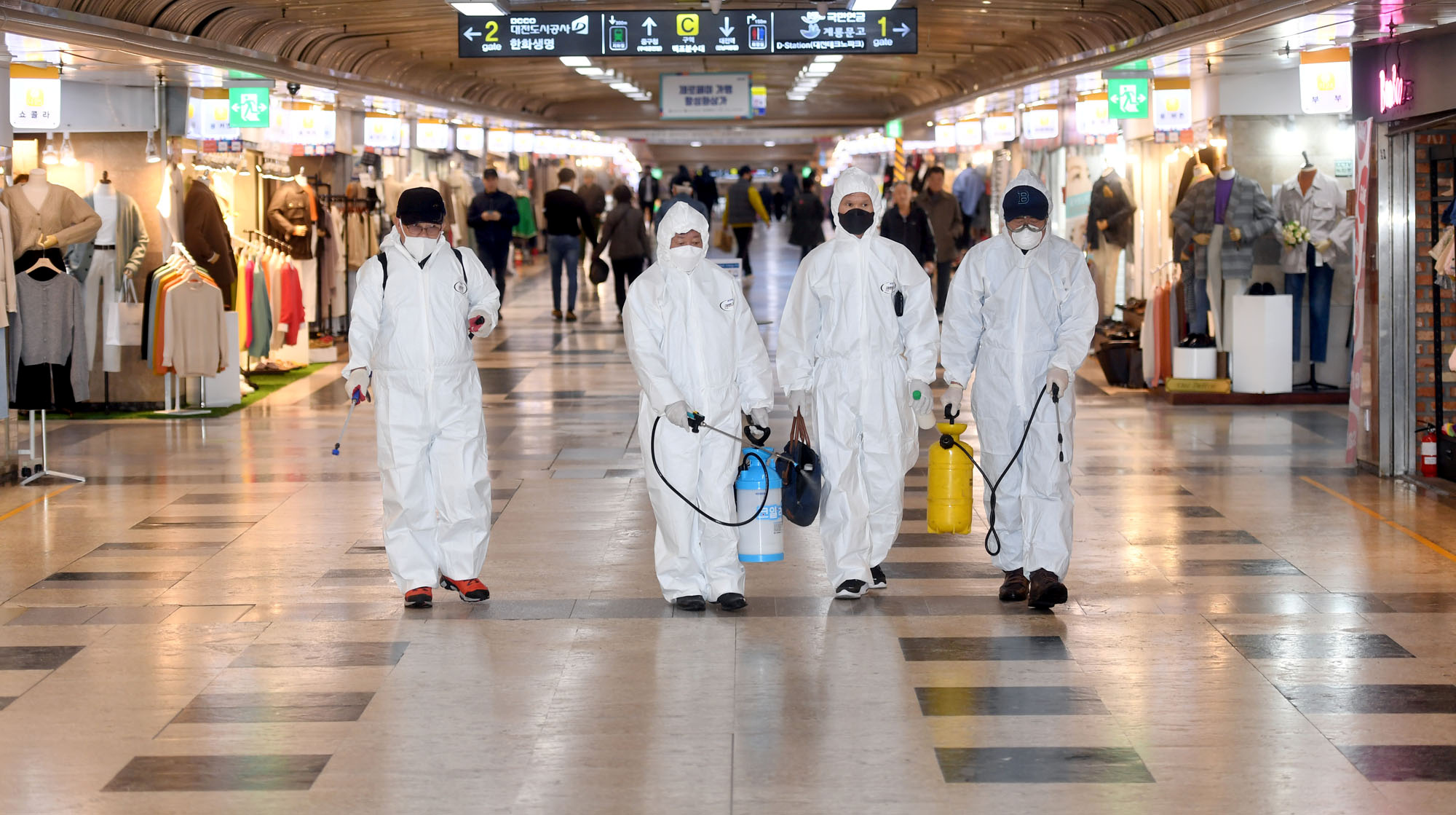 Hàn Quốc tổ chức xịt sát khuẩn sau khi dịch bệnh Covid-19 bùng phát mạnh tại đây.