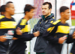 | HLV Dunga (giữa) đang đối mặt với thử thách lớn nhất trong sự nghiệp cầm quân của mình ở World Cup sắp tới - Ảnh: Reuters |