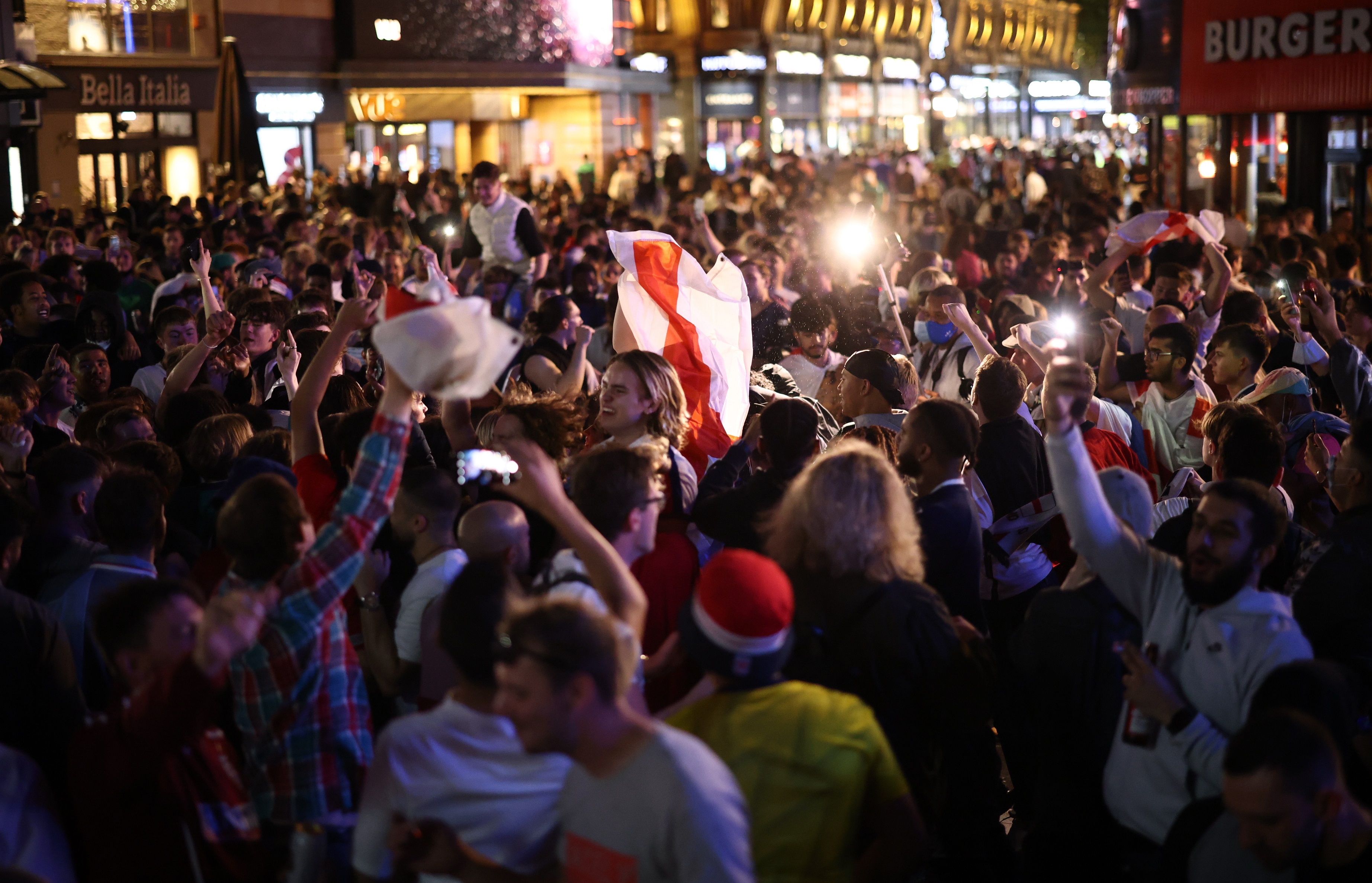 Vào hôm chủ nhật, LĐBĐ Anh cho biết họ đang làm việc với UEFA để cung cấp thêm vé cho người hâm mộ Anh được vào sân xem trận bán kết chứ không tổ chức bất kỳ một sự kiện tụ tập đông người nào. Tuy nhiên, ngay sau khi đội tuyển Anh đè bẹp Ukraine 4-0 ở trận tứ kết EURO 2020, hàng triệu người hâm mộ xứ sương mù đã mở tiệc ăn mừng suốt đêm, họ tụ tập ở các quán rượu, công viên và đường phố khiến mọi nơi trở nên đông đúc và chật ních người.