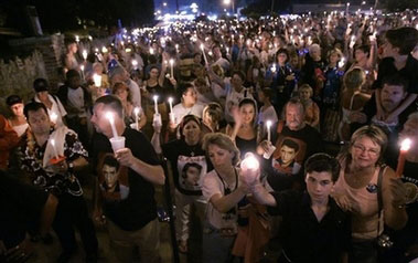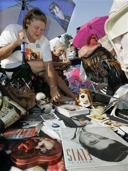 Hàng ngàn ngọn nến cầu nguyện cho linh hồn vị "vua" quá cố đã được thắp sáng từ đêm 15.8 và kéo dài đến sáng hôm sau. Ban ngày, dưới cái nóng gay gắt lên tới 38 độ C, người hâm mộ vẫn thành tâm xếp thành hàng dài viếng mộ thần tượng, tổ chức những cuộc "triển lãm" nho nhỏ các món đồ lưu niệm về ông... "Trời nắng quá, chúng tôi đang tìm mọi cách để làm mát", Mike Meridian, một quả đốc công trình 46 tuổi đến từ Houston vừa nói vừa tay chỉ vào cây dù trên đầu. Mỗi năm, Meridian đều cùng vợ đến đây kể từ cái ngày "định mệnh" 16.8.1977, khi Elvis Presley đột ngột qua đời ở tuổi 42 vì một cơn đau tim.