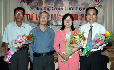 Tại buổi tư vấn trực tuyến, nhiều thắc mắc liên quan đến việc nộp hồ sơ đăng ký dự thi ĐH-CĐ đợt cuối cùng (hạn chót 17h ngày 17.4), quy chế tuyển sinh và các vấn đề liên quan đến kỳ thi tốt nghiệp THPT, tuyển sinh ĐH-CĐ-TCCN 2008... đã được các khách mời giải đáp đầy đủ cho các thí sinh. Dưới đây là toàn bộ nội dung buổi giao lưu trực tuyến: