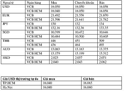 Tỷ giá Ngân hàng Ngoại thương Việt Nam (VCB): (ĐVT: đồng/ngoại tệ)