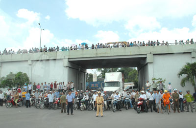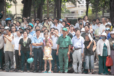 Đông đảo người dân đứng chờ hai bên đường tiễn đưa nguyên Thủ tướng Võ Văn Kiệt - Ảnh: Diệp Đức Minh |