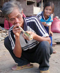 Ông Triệu Văn Tướng làm kèn ống cho cháu gái