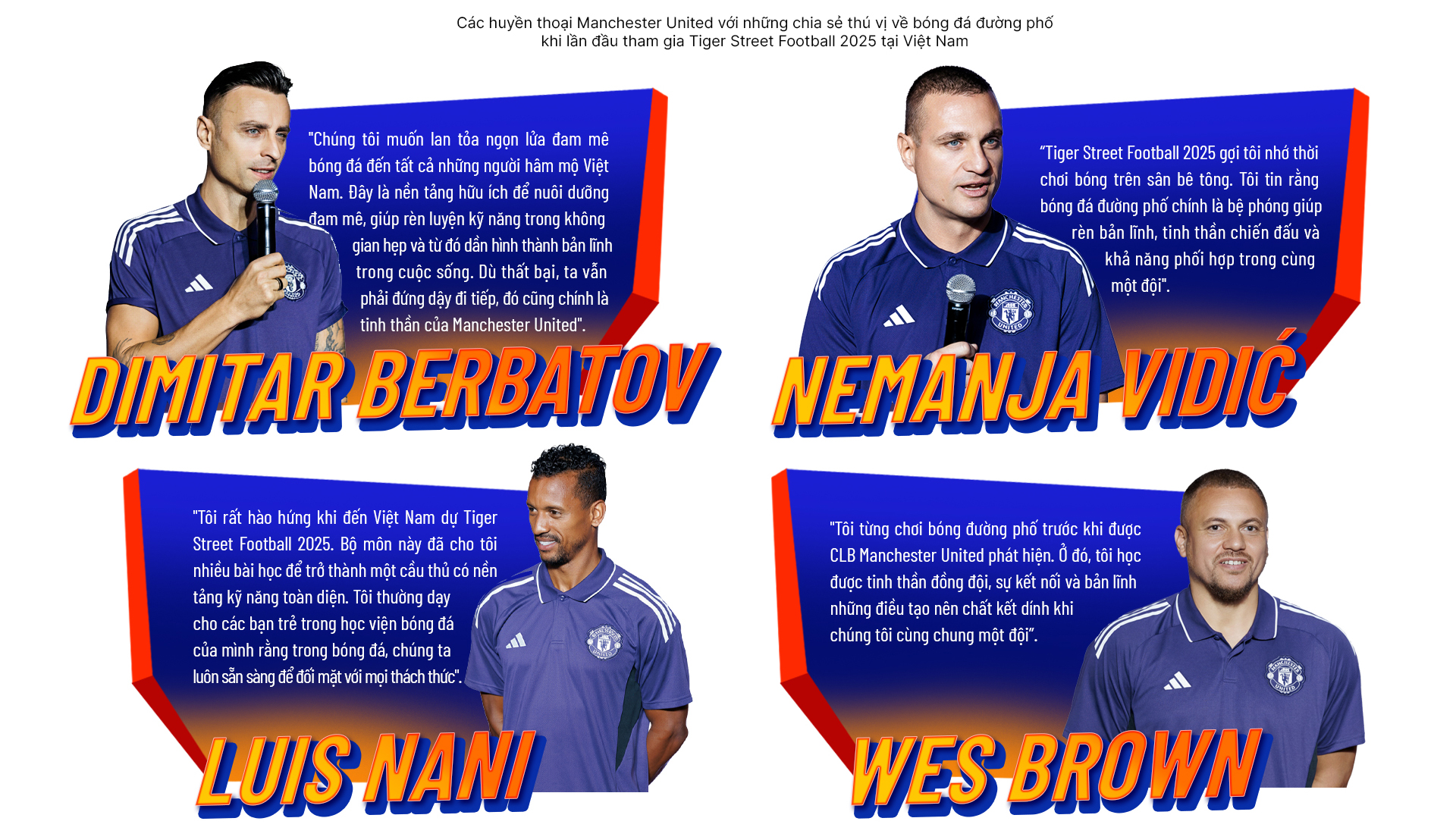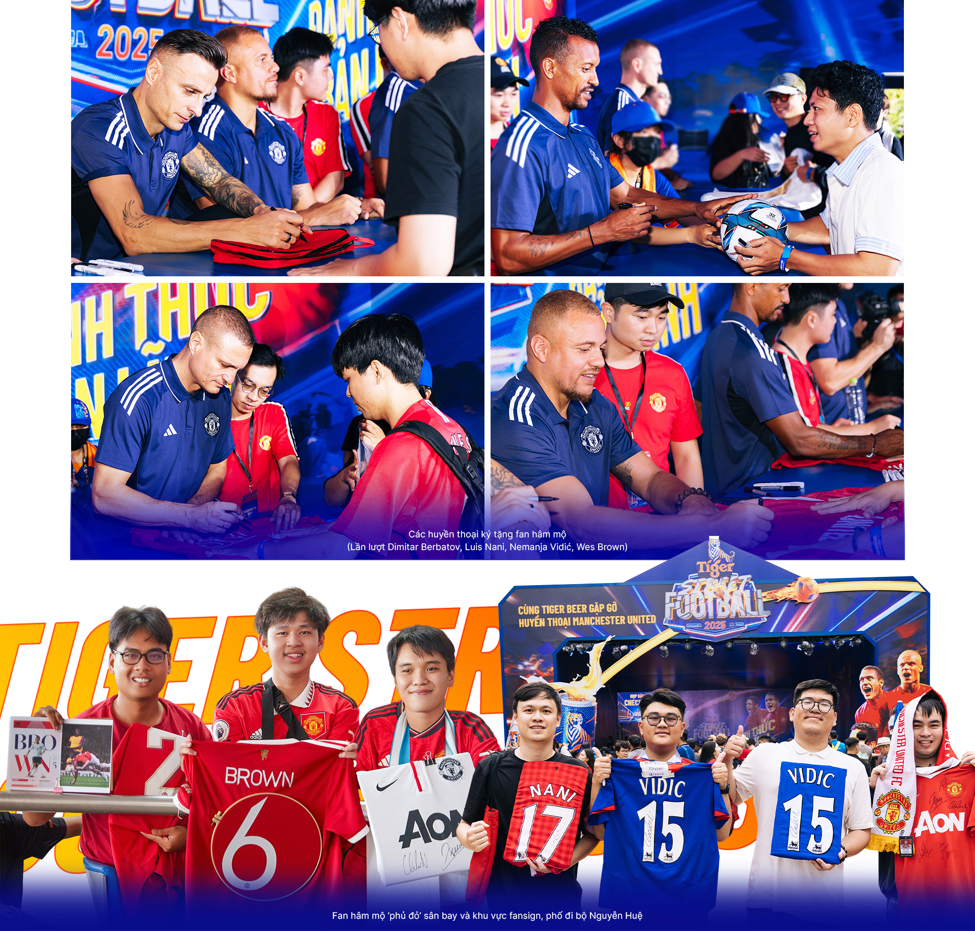 Người hâm mộ (Fan) bóng đá Việt, đặc biệt là fan Manchester United, hẳn không thể quên bộ tứ huyền thoại Dimitar Berbatov, Luis Nani, Nemanja Vidić và Wes Brown, những người đã góp phần làm nên lịch sử của "Quỷ Đỏ". Khi hay tin các huyền thoại cùng đến Việt Nam tham dự Tiger Street Football 2025, đông đảo người hâm mộ đã đổ về sân bay đến Phố đi bộ Nguyễn Huệ để gặp gỡ, giao lưu và chứng kiến các huyền thoại dẫn dắt bốn đội vô địch khu vực tại chung kết toàn quốc của giải đấu này.