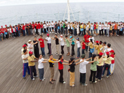 11 nhóm, trong đó mỗi nhóm gồm từ 2 đến 4 thành viên của tất cả 11 nước cùng thể hiện tình đoàn kết qua các trò chơi tập thể, băng reo và những buổi thi đua trình diễn kỹ năng thật hào hứng và sôi động. Bạn Kumaran Krishnan (Malaysia) cho biết: "Mình thích nhất các trò chơi tập thể như: lập nhóm, cùng nhau về đích, khiêu vũ vượt dây... Qua đó mình lại có thêm nhiều người bạn mới". Bạn Mohamad Namirul (Brunei) thì tâm sự: "Trước đây mình rất nhút nhát nhưng sau khi tham gia các hoạt động tập thể trên tàu, mình đã cảm thấy tự tin hơn rất nhiều".