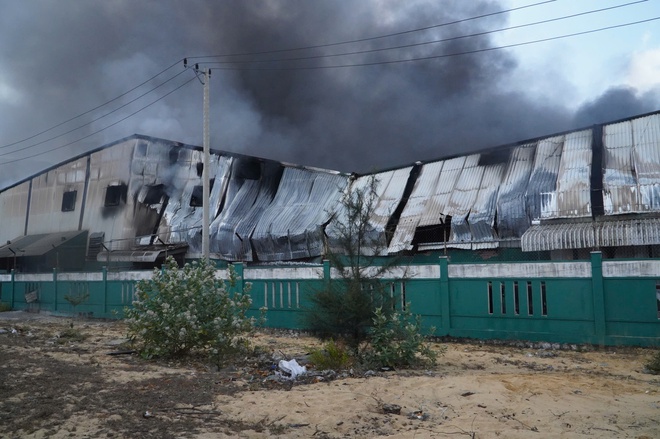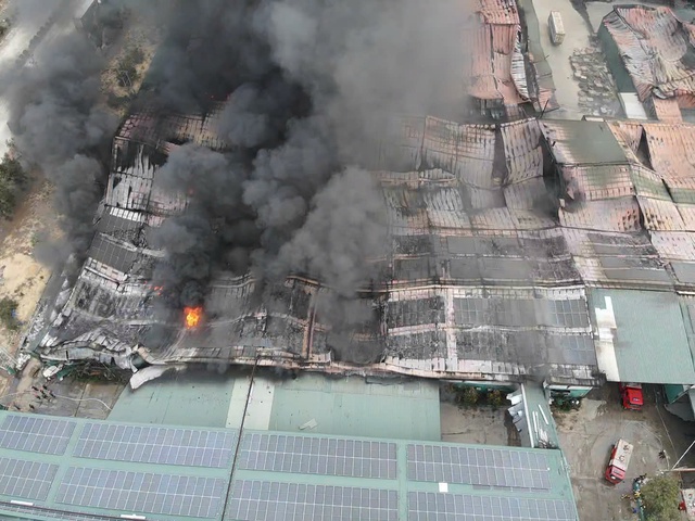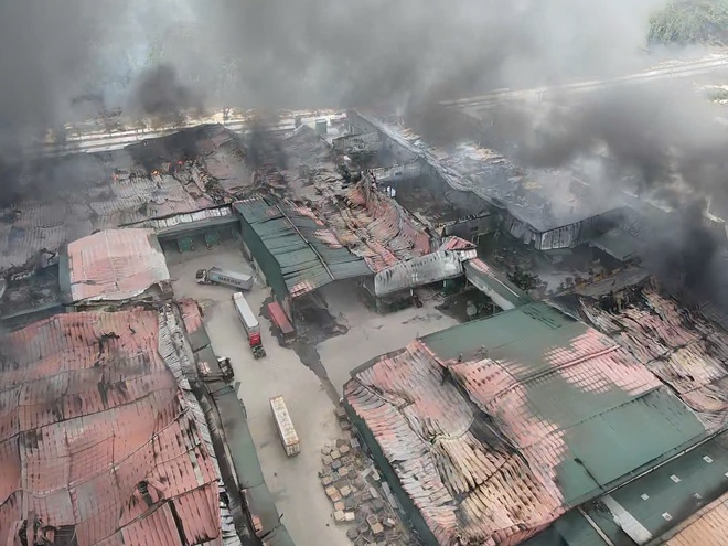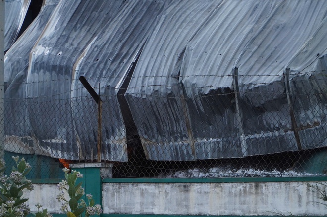 Hàng ngàn mét vuông nhà xưởng bị ngọn lửa thiêu rụi, những bức tường hư hại, đổ sập
