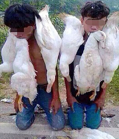 Thậm chí, nhiều người quá tức giận còn đem thêm vài con vịt ra quàng lên cổ bọn chúng (ảnh) với mục đích khiến những kẻ đạo chích phải xấu hổ và bỏ luôn cái tật ăn cắp.