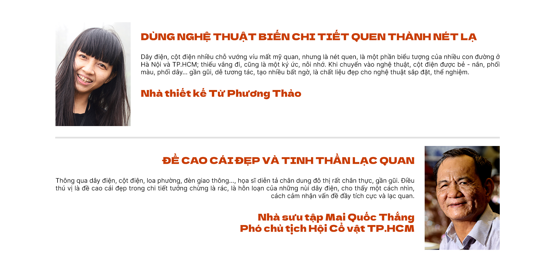 Khi đối diện với cột điện, dây điện ở đô thị, tôi không đặt vấn đề xấu - đẹp. Tôi nhìn đó như câu chuyện của đời sống xã hội, của hiện đại. Người dân vui vì an toàn hơn, thành phố gọn gàng hơn, và tôi cũng rất vui.