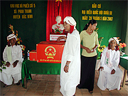 Tại xã thuần Chăm Phan Thanh, thuộc huyện Bắc Bình, tỉnh Bình Thuận. Hàng trăm đồng bào Chăm trong thôn Thanh Kiết, Châu Hanh, Cảnh Diễn trong đó có cả các chức sắc tôn giáo đã có mặt rất sớm ở các điểm bầu cử để làm lễ chào cờ.