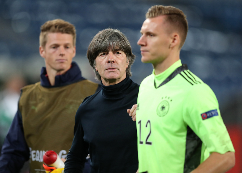 HLV Joachim Loew (Đức) đến an ủi thủ môn Bernd Leno