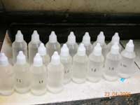 Các mẫu nước ở đường Dương Bá Trạc, Q.8 được xét nghiệm cho kết quả nước bị nhiễm bẩn - Ảnh: Đình Mười |