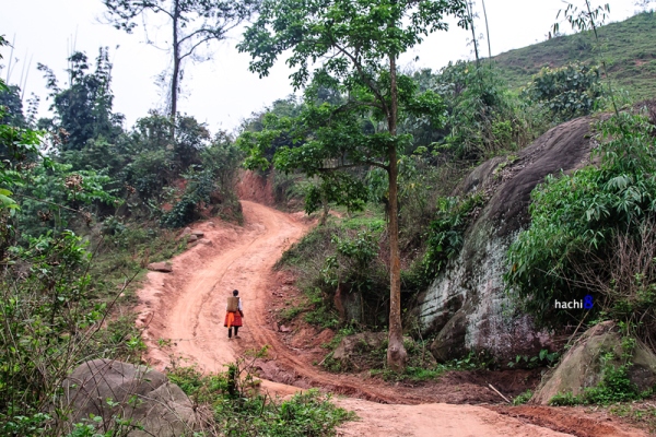 Quãng đường chỉ 10km nhưng là đường đất đỏ bụi mù và dốc lên, dốc xuống rất hiểm trở. Thời tiết may mắn dù đang âm u, nhưng không mưa. Nếu mưa, chúng tôi sẽ gần như không thể di chuyển được. Có những đoạn chúng tôi phải leo bộ và đẩy xe. Những tiếng máy gầm trong mùi khét lẹt khi mà liên tục để số 1-2. Cung đường khiến tôi nhớ tới những câu thơ cũ "ngàn thước lên cao, ngàn thước xuống” mà nhà thơ Quang Dũng đã mô tả về vùng đất này trong bài Tây Tiến.