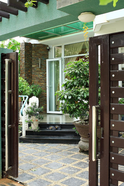 Thực tế thì tùy theo địa phương, khu đất cụ thể mà cổng nên làm theo kiểu nào để vừa đảm bảo an ninh, chống sự xoi mói từ bên ngoài vào nhà, vừa không khiến ngôi nhà quá tách biệt với môi trường chung quanh, hài hòa thiên nhiên và cảnh quan toàn khu (hình 4).