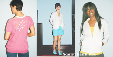 Cô diễn viên cưng của Woody Allen rất thích chất liệu dễ nhìn, màu sắc tươi sáng và chi tiết xinh xắn. Cũng chính Scarlett đã vẽ logo "Hearts", với hình trái tim hiện diện trên áo tunique liền mũ, áo khoác ngoài, tee-shirt, áo chẽn, quần thun bó, trang phục thể thao và 4 kiểu giày thể thao dựa theo mẫu giày chạy bộ Aztec của Reebok năm 1979. Màu sắc đi từ vàng chanh cho đến xanh sáng, đỏ tươi, hồng và xám sáng và cô cho rằng như thế sẽ vừa thuận tiện cho việc chơi thể thao cũng như có thể uống cà phê cùng bạn bè. (Elle)