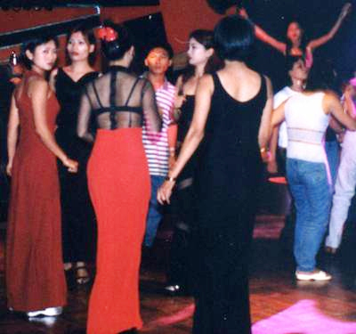 Buổi tối. Bước chân vào vũ trường L., điều đầu tiên đập vào mắt chúng tôi là... ban nhạc. Nhảy theo tour phải có nhạc sống phục vụ chứ chơi nhạc máy thì chán chết! Khác với các dancing dành cho bọn nhóc, ở đây khung cảnh có vẻ lịch sự và ấm cúng hơn. Lần lượt từng ca sĩ được MC giới thiệu là giọng hát "tầm cỡ" lên phục vụ. Một má mì đon đả bước đến hỏi chúng tôi có nhu cầu "đào" không? Mua tích-kê vài chục nghìn còn boa bao nhiêu là tùy hảo tâm. Vũ nữ không sắc nước hương trời, ăn mặc khá "khiêm tốn": đầm dài qua gối, chỉ phần ngực là khoét rộng tối đa để các anh, các chú tha hồ ngắm.