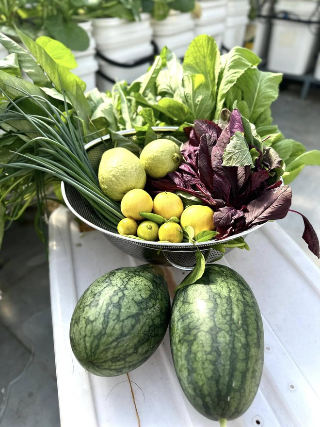Nói về các khoản chi phí khi trồng cây trên sân thượng, anh Nhựt chia sẻ: “Với khu vườn nhà tôi, thì chi phí cho nhà màng và lưới là khoảng 1 triệu đồng/m2, tùy thiết kế; chi phí chống thấm sân thượng khoảng 300.000 - 500.000 đồng/m2; hệ thống tưới tự động thì tôi mua thiết bị về tự lắp đặt, khoảng 3 - 5 triệu đồng; chi phí cho thùng trồng khoảng 2 - 3 triệu đồng”.