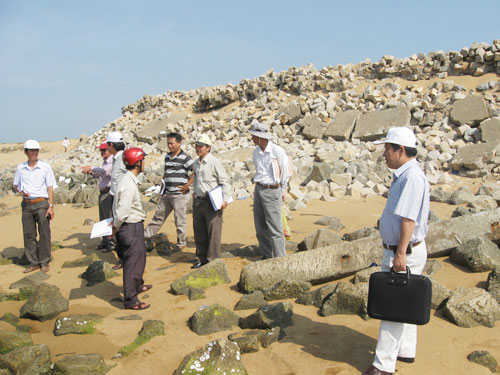 Gói thầu số 5a, đá hộc đổ làm khối đối trọng bên ngoài bị sóng biển cuốn trôi một phần. Gói thầu số 5b, một phần tetrapod xếp chân kè bị sóng xô lệch khỏi vị trí…