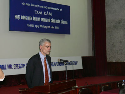 Trong cuộc trao đổi hết sức thoải mái này, ông Frazier giới thiệu hoạt động của HHĐA Mỹ trong bối cảnh toàn cầu hóa khi xu hướng của xã hội hiện đại là xem phim trên internet và điện thoại di động. Frazier cho biết Hollywood có 6 hãng phim lớn, một năm sản xuất khoảng hơn 200 phim, chính 6 hãng phim này đã liên kết thành HHĐA Mỹ.