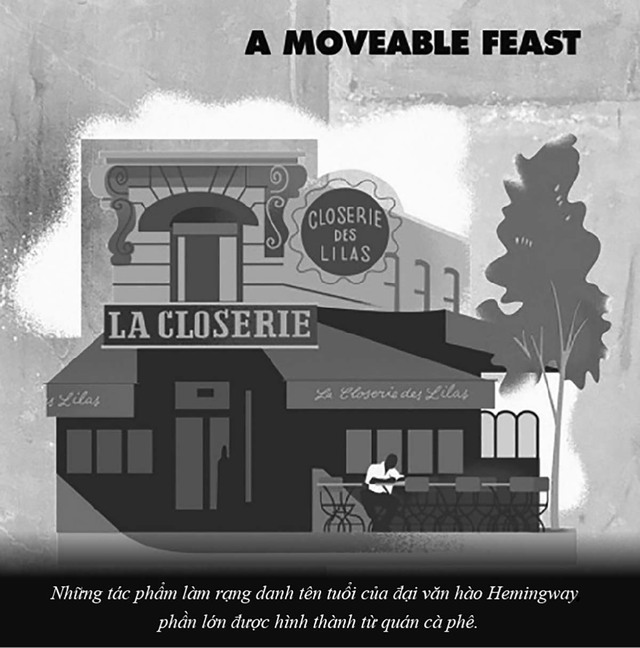 Với tư duy khác biệt đó, Hemingway coi trọng không gian sáng tạo để có thể phát triển ý tưởng. Ông thường xuyên ngồi hàng giờ trong quán cà phê. Thưởng thức cà phê, đọc sách, quan sát và sáng tạo. Những quán cà phê ghi dấu ấn Hemingway nổi tiếng nhất có thể kể đến như La Rotonde, nơi ông có thể gặp các văn hào Scott Fitzgerald, Gertrude Stein, Thomas Stearns Eliot bàn luận về ý tưởng mới; Quán Café des Deux Magots “đại bản doanh” của những người theo Chủ nghĩa Siêu thực; Quán Café de Flore với những hoạt động khuyến khích văn học bằng giải thưởng Prix de Flore của riêng mình; Café du Dôme “sân ga” của cộng đồng lưu dân đến từ Trung Âu và Bắc Mỹ; La Closerie des Lilas được lưu vào lịch sử văn học như ngôi nhà thứ hai của Hemingway…