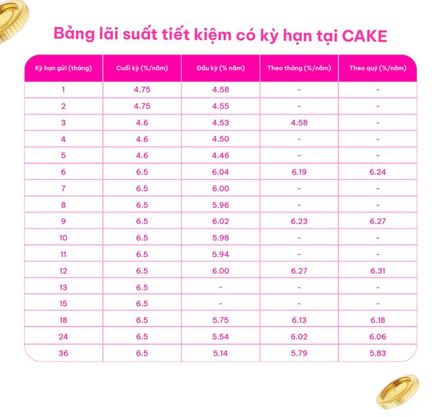 Cake by VPBank là một trong những ngân hàng có lãi suất tiết kiệm cao top đầu thị trường với kỳ hạn từ 6 tháng lên tới 6,5%