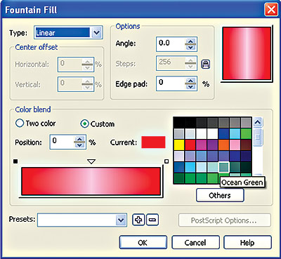 - Chọn Fill Tool - Fountain Tool, trong hộp thoại Fountain Tool ở: