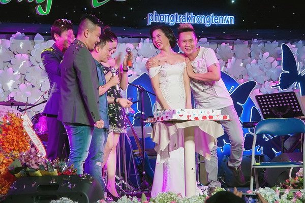 Đến mừng sinh nhật của Lệ Quyên còn có những người bạn thân thiết trong nghề như danh ca Thái Châu, Quách An An, Quang Linh, Hàn Thái Tú... Các nghệ sĩ đã lên thẳng sân khấu, hát chúc mừng sinh nhật Lệ Quyên.