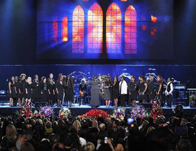 Hai ngôi sao bóng rổ Kobe Bryant và Magic Johnson cũng lên phát biểu. Ca sĩ trẻ Jennifer Hudson tiếp đó lên sân khấu hát lại ca khúc của Michael Will you be there? (Anh sẽ ở đó chứ?). Ca sĩ Jon Mayer tiếp nối bằng ca khúc Human Nature, cũng do Michael hát khi xưa...