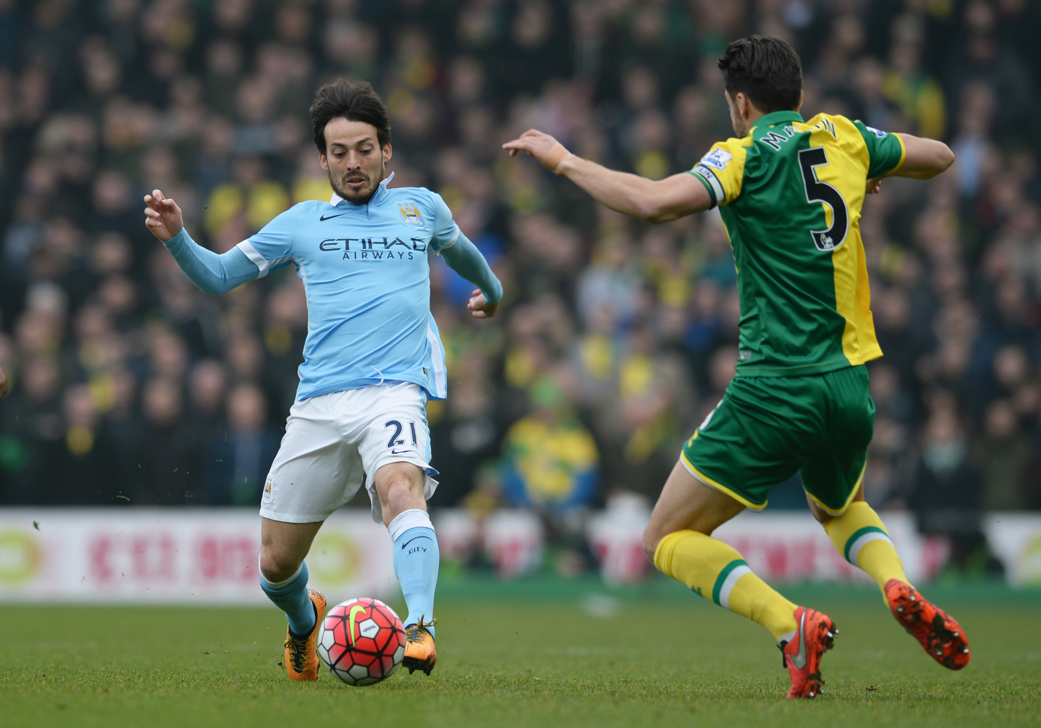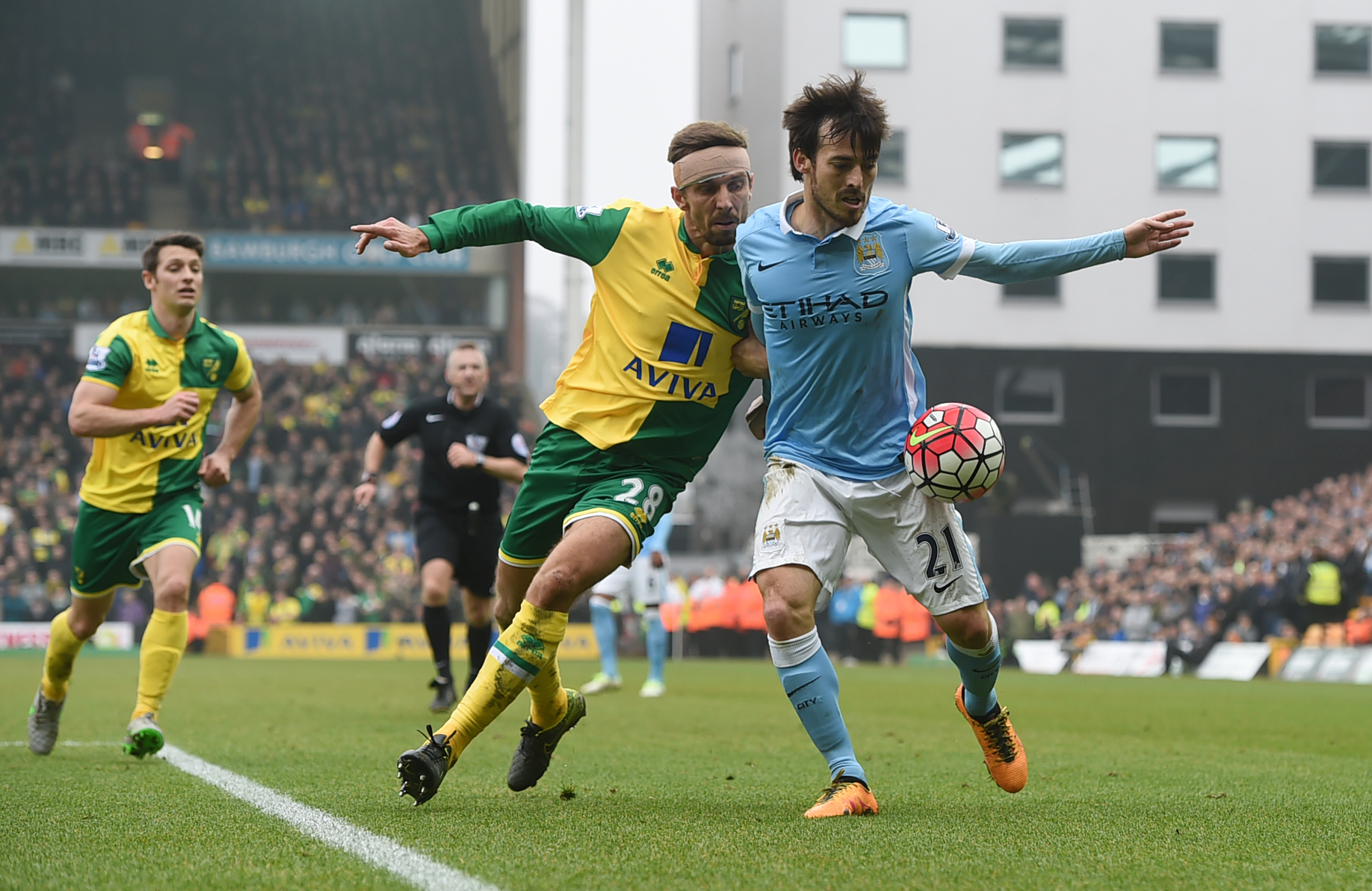 ![]() Không khí trên sân Carrow Road đang rất sôi động khi đội chủ nhà có phần dồn ép Man City