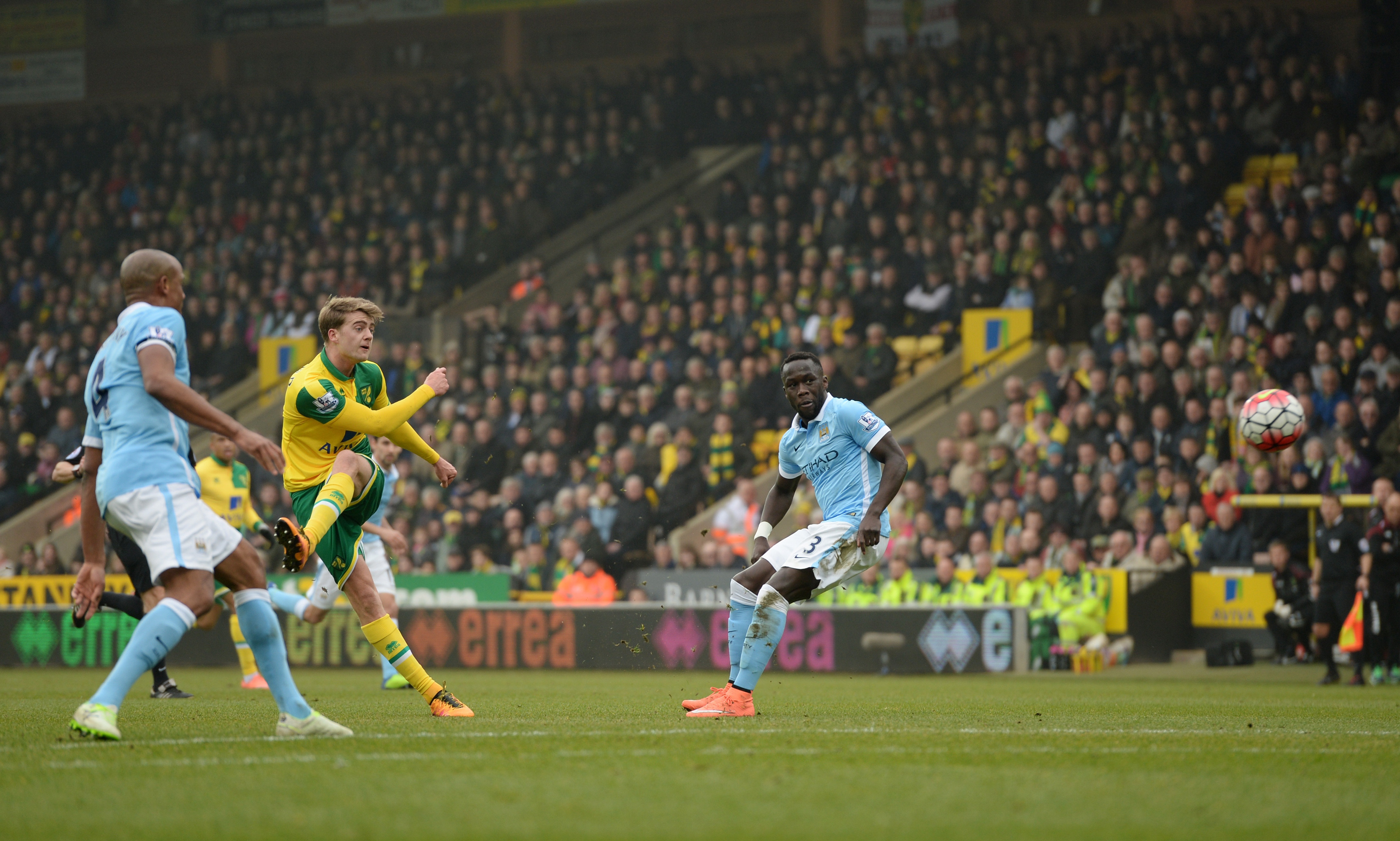 Norwich đang rất nỗ lực chống trả những pha tấn công dồn dập của Man City | |