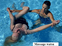 Sau cùng, nếu bạn thích tắm mình trong nước thì hãy thử phương pháp Watsu, cũng là một môn cổ truyền Nhật Bản nhưng được xuất hành sang California từ hơn hai mươi năm qua. Watsu được thực hiện trong bồn đầy nước nóng với một nhân viên để đu đưa cơ thể bạn thật nhẹ nhàng như ru ngủ; đồng thời thực hiện bấm huyệt, co giãn và vươn duỗi các cơ và khớp. Trong tư thế nhắm mắt và được nước bao bọc, xoa bóp ở môi trường vô trọng lực như trong bào thai, khi bước ra ngoài bạn sẽ có cảm giác hoàn toàn khác lạ, thư thái, bình an...