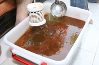 Dùng vá múc canh thay chân, máy cũng cho ra "độc tố" - Ảnh: Đ.N.T |