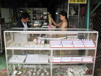 Một cửa hàng bán ngọc trai giá rẻ ở chợ Hàm Ninh - Ảnh: Tiến Trình |