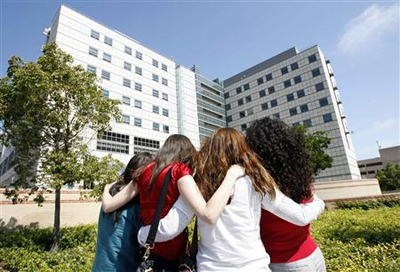 Bên ngoài bệnh viện ở Los Angeles, hàng trăm người hâm mộ đã chờ sẵn để xác nhận thông tin về sự "ra đi" của Michael Jackson và cầu nguyện cho anh.