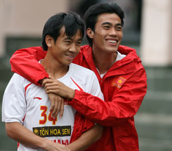 | Minh Đức (trái) có niềm vui mới trong năm mới - Ảnh: B.Dương |