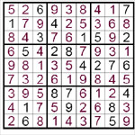 Điền vào các ô còn trống sao cho mỗi hàng, mỗi cột và mỗi miền đều chứa 9 con số (không lặp lại) từ 1 đến 9.