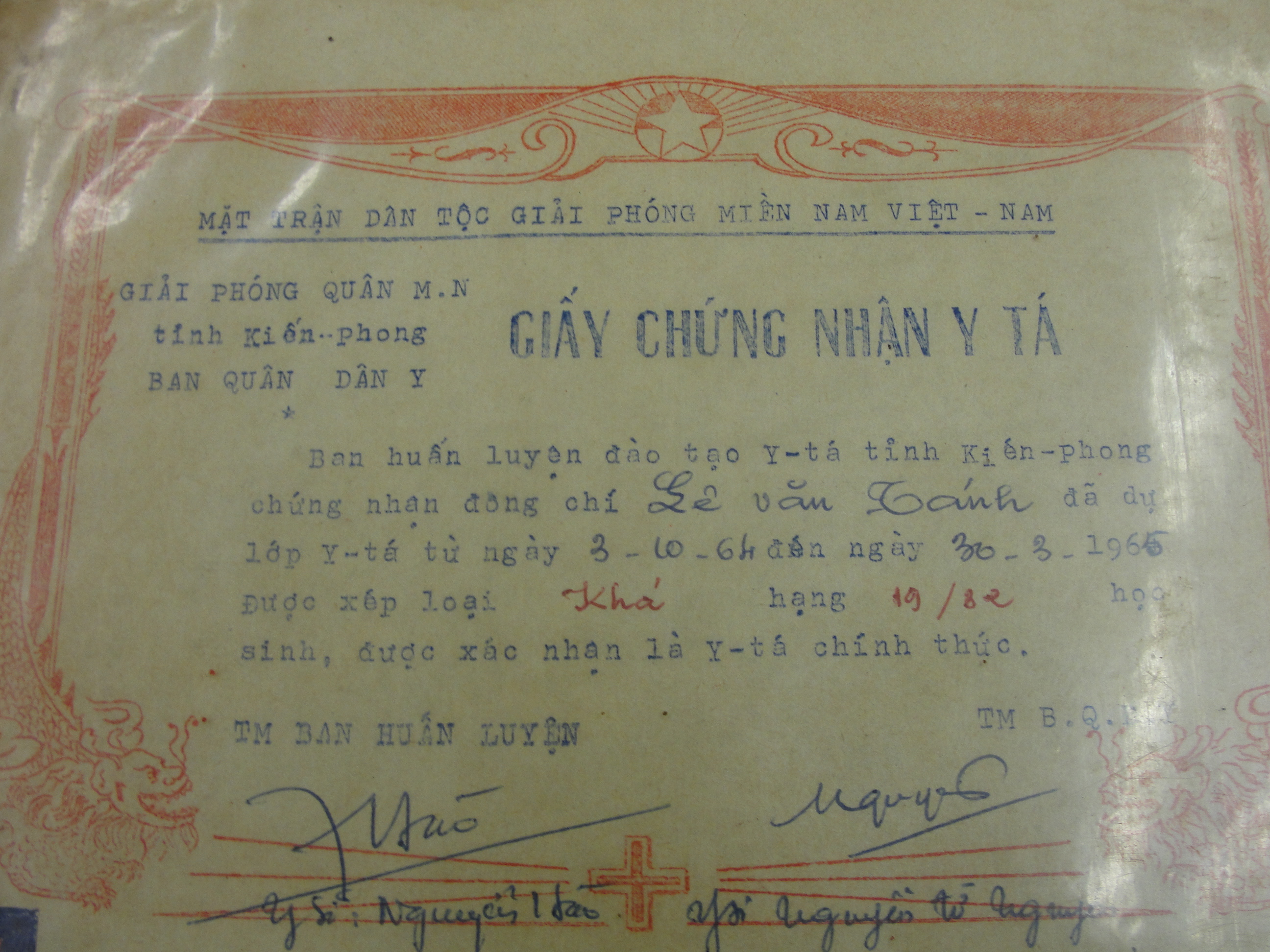 Giấy chứng nhận y tá của ông Lê Văn Tánh