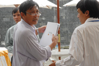 Khoảng 10 giờ 15, đã có vài người mua được nhà. Đám đông càng phấn khích. Bất cứ ai sau khi đặt tiền cọc xong đi ra là được 2 nhân viên của chủ đầu tư bảo vệ như... yếu nhân. Ông Nguyễn Văn Sơn, mặt bơ phờ, mồ hôi nhễ nhại mua được 1 căn hộ diện tích 100m2 lầu 7 với giá 260.000 USD, cho biết: "Tôi xếp hàng từ 4 giờ chiều qua giờ mới mua được một căn. Phải đặt cọc trước 2.000 USD và chủ đầu tư hẹn 10.11 đến ký hợp đồng".