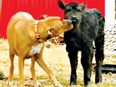 Chủ nhân nàng chó cũng quyết định đem cô bê con tội nghiệp vào ở hẳn trong nhà và cho ngủ chung với bà mẹ giàu tình mẫu tử dù vẫn chưa xuất giá lần nào. Thế là chó mẹ và bê con tha hồ quấn quýt bên nhau suốt ngày, cùng tung tăng chơi đùa trong phòng riêng của mẹ cún. Tất nhiên, vì khác "nhãn hiệu" nên thỉnh thoảng hai mẹ con cũng có những "bất đồng" nho nhỏ, chẳng hạn bé con mới một tuần tuổi mà đã cao... hơn mẹ hoặc mẹ cẩu có dạy kiểu nào bê con cũng không làm sao biết... sủa cho được! (NBC)