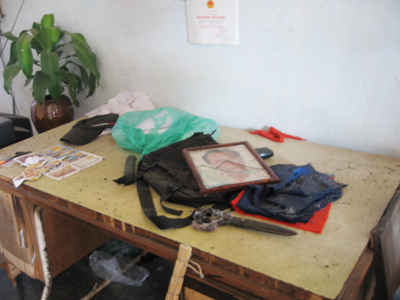 Ông Nguyễn Văn Thuần (57 tuổi, nhà đối diện) kể lại trong nét mặt kinh hoàng “tôi đang cắt rau phía sau nhà thì nghe một tiếng nổ lớn và nhiều tiếng kim loại bay vèo vèo trên đầu, nhìn lên thì thấy một cột khói cao khoảng 20 mét phía trước nhà, tôi liền chạy lên thì thấy bà Vinh và ông Việt nằm bất động trên vũng máu…”.