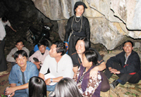 Đồng hồ chỉ 22 giờ, chúng tôi định kiếm chỗ ngủ để sáng mai trở về sớm. Chợt, đâu đó văng vẳng tiếng khèn, tiếng hát. Tôi cố lọc xem đó có phải từ chiếc cassette không? Nhưng không, đó là tiếng khèn, lại cả tiếng hát vọng lên từ một khe đá.