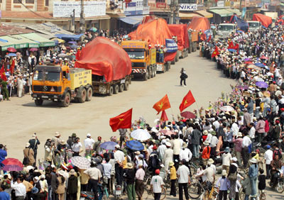 ![]() Ngày 1.3.2004, Trung tâm TP Điện Biên như một ngày hội khi đoàn xe chở tượng về đến nơi |