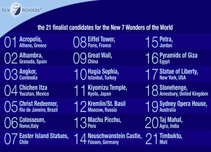 Danh sách 21 kỳ quan được đề cử - Ảnh: new7wonders.com