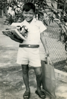 Tấm ảnh này chụp khoảnh khắc vui mừng của Nhị khi nhận quà của mẹ nuôi người Mỹ |