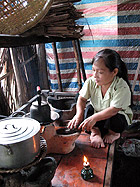 Nhìn thấy khách cặp xuồng phía bờ sông, cô gái đang lảng vảng trước hiên nhà chạy lẹ vào trong. Anh Nguyễn Thành Kiên, cán bộ xã Khánh Hưng, huyện Trần Văn Thời, tỉnh Cà Mau nói vội với tôi: "Ba chị em nhát lắm, trước nay có ai ghé nhà là mấy cô chạy trốn biệt". Trong căn nhà trống huơ trống hoác, người mẹ ngồi đờ đẫn ném về khách lạ một ánh mắt vô hồn. Cô út tên Nguyễn Thị Tiếp ngồi núp sau lưng, mượn chiếc vai còng của người mẹ già làm chỗ trốn tránh. Chị lớn Nguyễn Thị Lia thì chạy vội ra bờ dừa gọi người em trai tên Hảnh đang ương mấy dây bầu dây mướp vào tiếp khách. Lia nói ở nhà chỉ có Hảnh là người "có học", biết "trả lời" khách chứ ba chị em cô và người mẹ bị tai biến ngồi một chỗ không ai biết gì hết. Còn người chị kế, là người yếu nhất trong ba chị em, thì ngồi lọt thỏm trên bộ ván kê thấp lè tè dưới đất. Trong suốt buổi nói chuyện, người mẹ Lê Thị Lựu, 73 tuổi, chỉ kể được một câu chuyện liền mạch, không đứt quãng: "Hồi sanh tụi nó ra, thấy tay chân có một lóng, người ta biểu vợ chồng tui xách đi cho hay bóp mũi chết, chớ như vậy làm sao nuôi được. Tui đâu có nghe theo, con của mình tạo ra thì mình nuôi, chứ làm vậy sao nỡ". Nghe kể, ba chị em ngồi xúm xít sau lưng mẹ, lặng thinh cúi mặt.