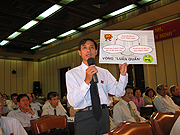 Đại biểu Phạm Minh Trí "khai pháo" bằng việc đưa ra công trình nhà lồng bán thịt chợ đầu mối Tân Xuân (Hóc Môn) làm thủ tục kéo dài 4 năm mới xong. Liên quan đến người dân, ông Trí cho biết đích thân ông đi làm thủ tục xin cấp phép xây dựng, thuê một tổ chức nhà nước đo vẽ hiện trạng đất. Hợp đồng ký kết quy định 20 ngày hoàn tất, nhưng 1 tháng mới xong. "Vậy mà có người dân còn nói như thế là nhanh, họ thuê phải mất 5 tuần. Nhưng nhiều người bảo đấy là chú không biết, chứ ra dịch vụ tư chỉ 3 ngày" - ông Trí nói và lo lắng: "Nếu để dịch vụ tư trả tiền cho hành chính công, thì cán bộ không có động cơ làm việc mà chỉ chờ có tiền mới làm. Như thế chúng ta nỗ lực CCHC có hiệu quả?!". Ông Nguyễn Minh Dũng lấy giấy ra đọc lại trình tự thời gian giải quyết hồ sơ cấp phép xây dựng nhà lồng chợ Tân Xuân... Về dịch vụ đo vẽ, ông Dũng cho biết Sở đã tham mưu trình TP ban hành bảng giá đo vẽ, quy định hành nghề đo vẽ... và lưu ý người dân khi ký hợp đồng phải xem chứng chỉ hành nghề của tổ chức đo vẽ, nếu không đúng thời gian thì... tranh tụng ra tòa!